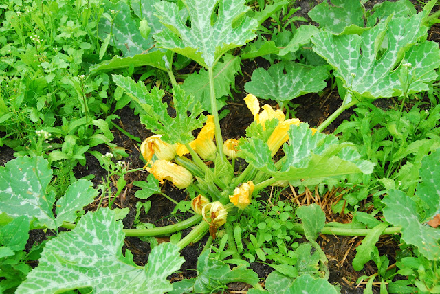 husband didn't do such a good job at keeping the weeds back in the melon/squash patch! and i've been stopped from the task myself several times by swarms of flies! it's miserable out there and i suppose our squash crop will reflect how much competition the plants had from the weeds. i found a few zucchini (enough to make zucchini bread) and have used flowers to make delicious stuffed and breaded tasty treats, but they're not going like gangbusters like they should be. i hope the fly problem abates soon!
