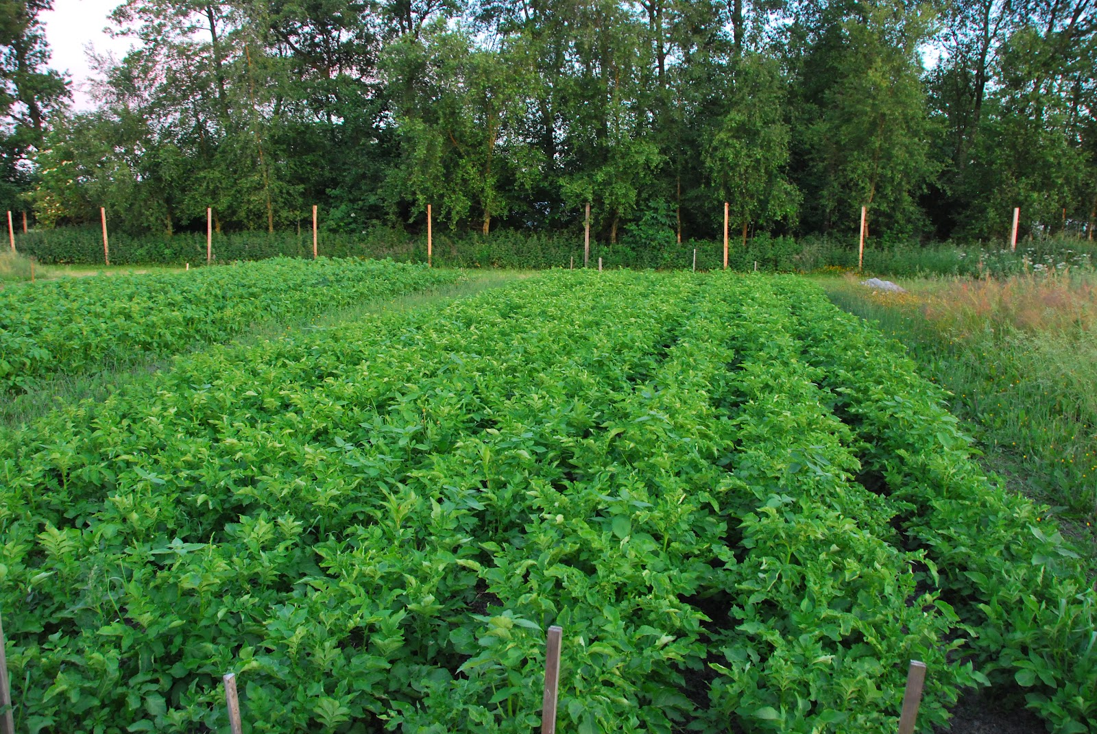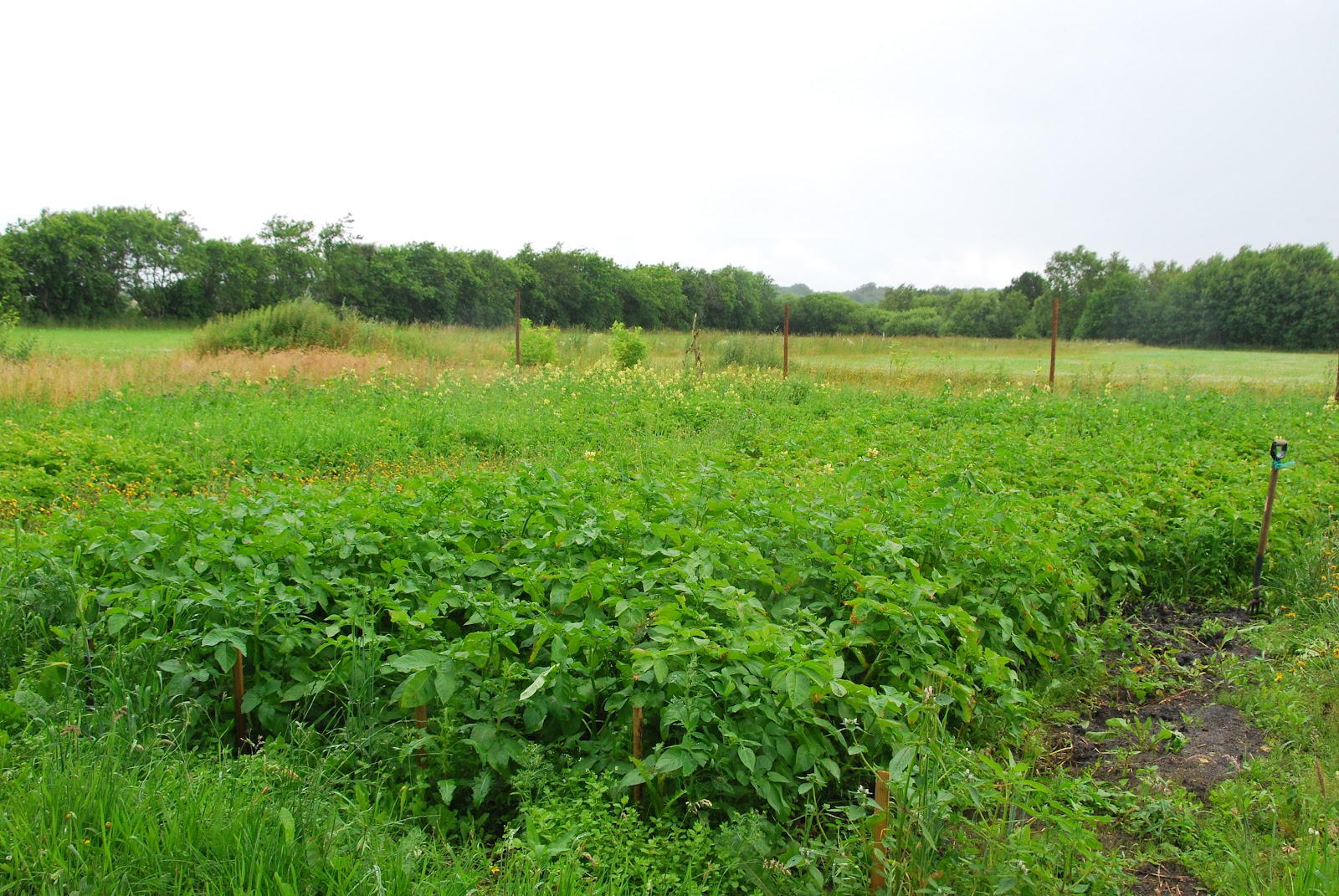 our big potato patch is doing well. you can tell we're organic by the weeds. :-) no pesticides around here!