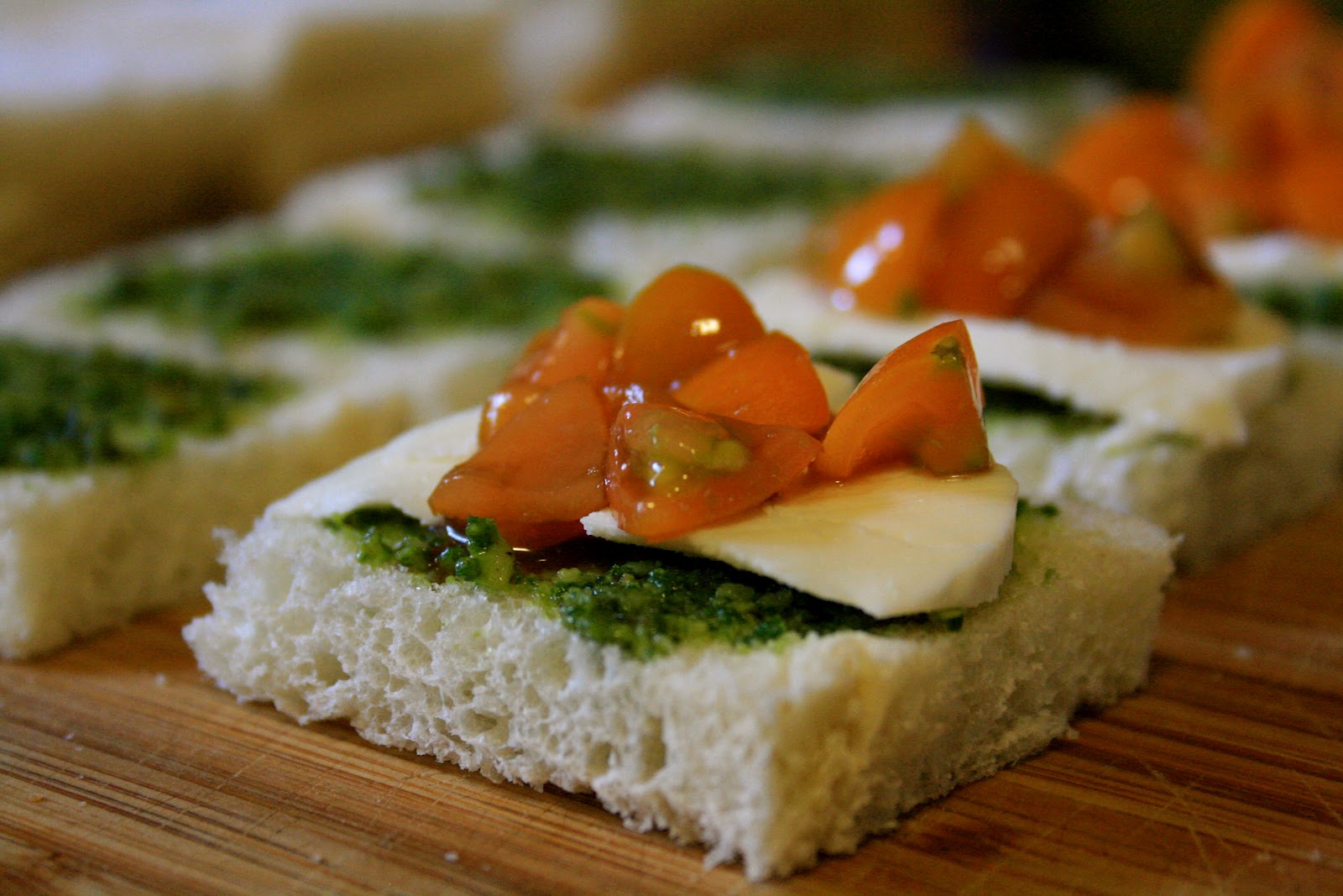 This morning I completed 80 tea sandwiches for a wedding shower. The ideas for them flooded to me easy enough and I just made sure to get all of my prep work done in advance so that this morning was all assembly. I was nervous about the sandwiches because if they sit too long they can tend to get soggy. I took some precautions against this making sure to coat the inner bread with a portion of ingredients that would help stave off dreaded sogginess. What I ended up with was three creations in a farm to table theme: A tarragon poached chicken with blackberry aioli and arugula micro-greens, a play on a farm caprese salad; hazelnut pesto with buffalo mozzarella and cherry tomatoes in a balsamic reduction, and finally a farm fresh egg salad with green tomato relish. I was excited about how it turned out and hope that it is a taste of a farm to table segment at the homestead. Thanks D!