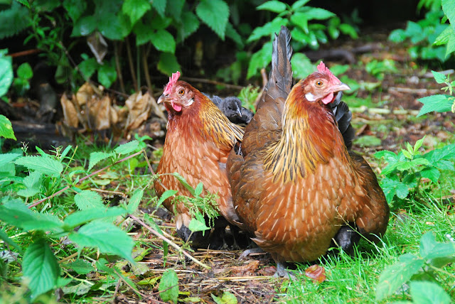 in recent weeks, the five brown hens have managed to hatch out another 14 chicks - 4 little brown ones and 10 black (which i suspect will be combination chickens like the motley rooster - as one of the brown roosters is top dog). the black hens were clearly very sneaky at getting their eggs under the brooding brownies, getting them to do all of the work of hatching out the chicks. we are consequently referring to the chicks all as SHE this time around, as we want them to be future hens. we certainly don't need another rooster around here. in fact, in the near future, one or two are going to be dinner.